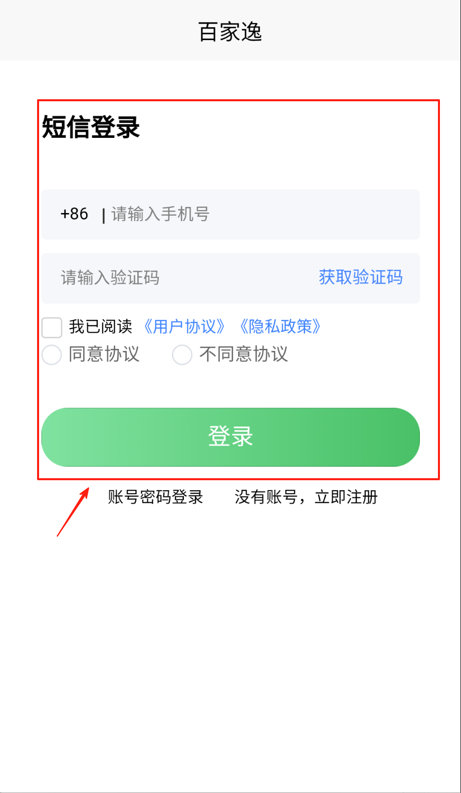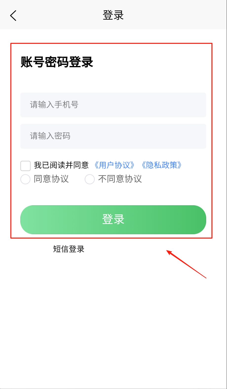 2、账号登录在输入框写手机号和密码,关键操作勾选我已阅读并同意协议框,选择同意协议点绿色登录键哦。