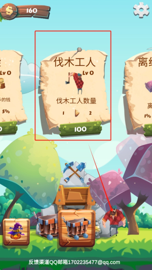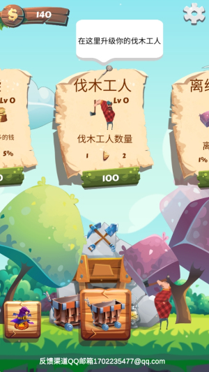 3、升级伐木工人:查看伐木工人信息,点击升级按钮增加伐木工人数量,提高金币产出效率。