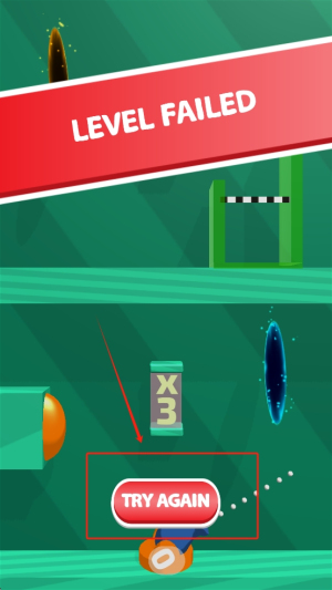 3、重新开始:如果未能通过关卡,点击“TRY AGAIN”按钮重新开始挑战。