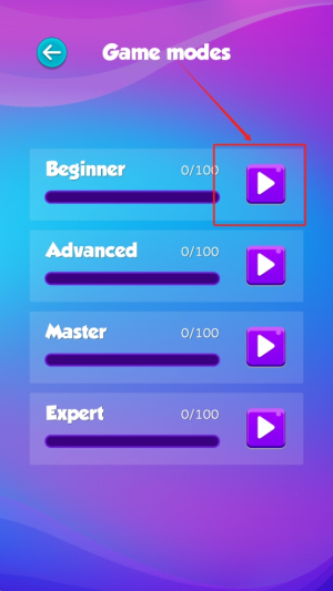 2、选择难度:在“Game modes”中选择适合的难度级别,如“Beginner”,然后点击右侧的箭头开始。