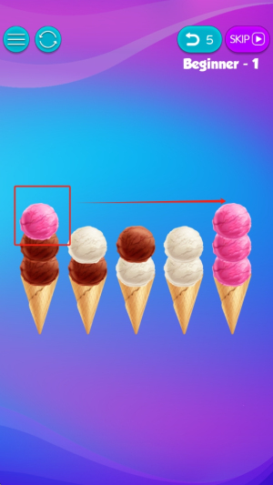 3、渐进难度设计:关卡难度随进度逐步提升,从少量冰淇淋简单分类,到多种类混合、复杂布局,持续考验观察力与反应力。