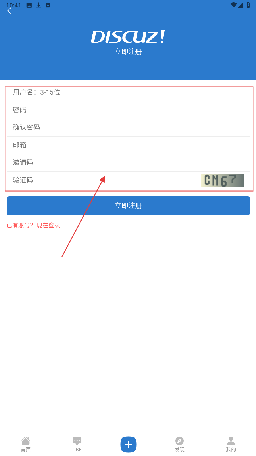 2、到【立即注册】页,依次填用户名、密码、确认密码、邮箱、邀请码、验证码。