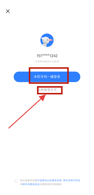 2、在登录界面,可选【本机号码一键登录】或【其他登录方式】,若选其他方式,进入【登录/注册】页。