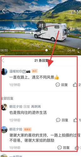 3、进入视频详情页,能观看视频(例如房车旅行相关),还有评论区(像“温暖如你”等用户留言),点击评论可开展互动。
