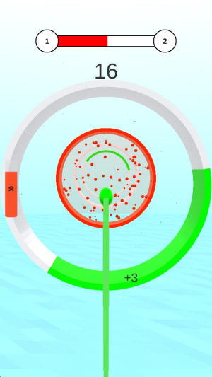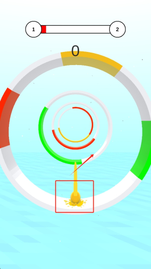 2、控制跳跃:观察圆环颜色变化,当圆环颜色与中心点颜色相匹配时,点击屏幕使角色跳跃。