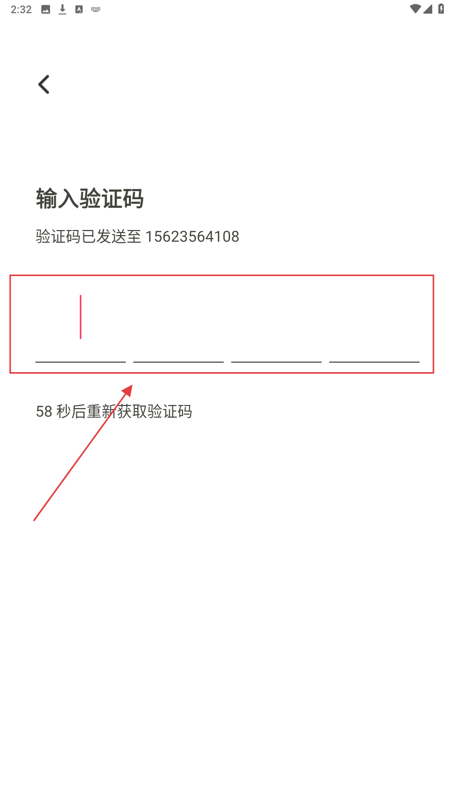 2、页面跳转至填码状态,确认手机号无误后,点击【获取验证码】按钮,等待接收验证码。