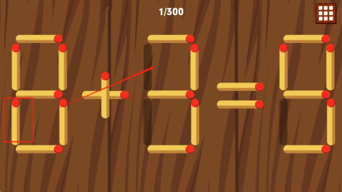 3、移动火柴解谜:点击选中火柴,拖拽至合适位置,改变数字形态,使等式成立或满足题目要求。