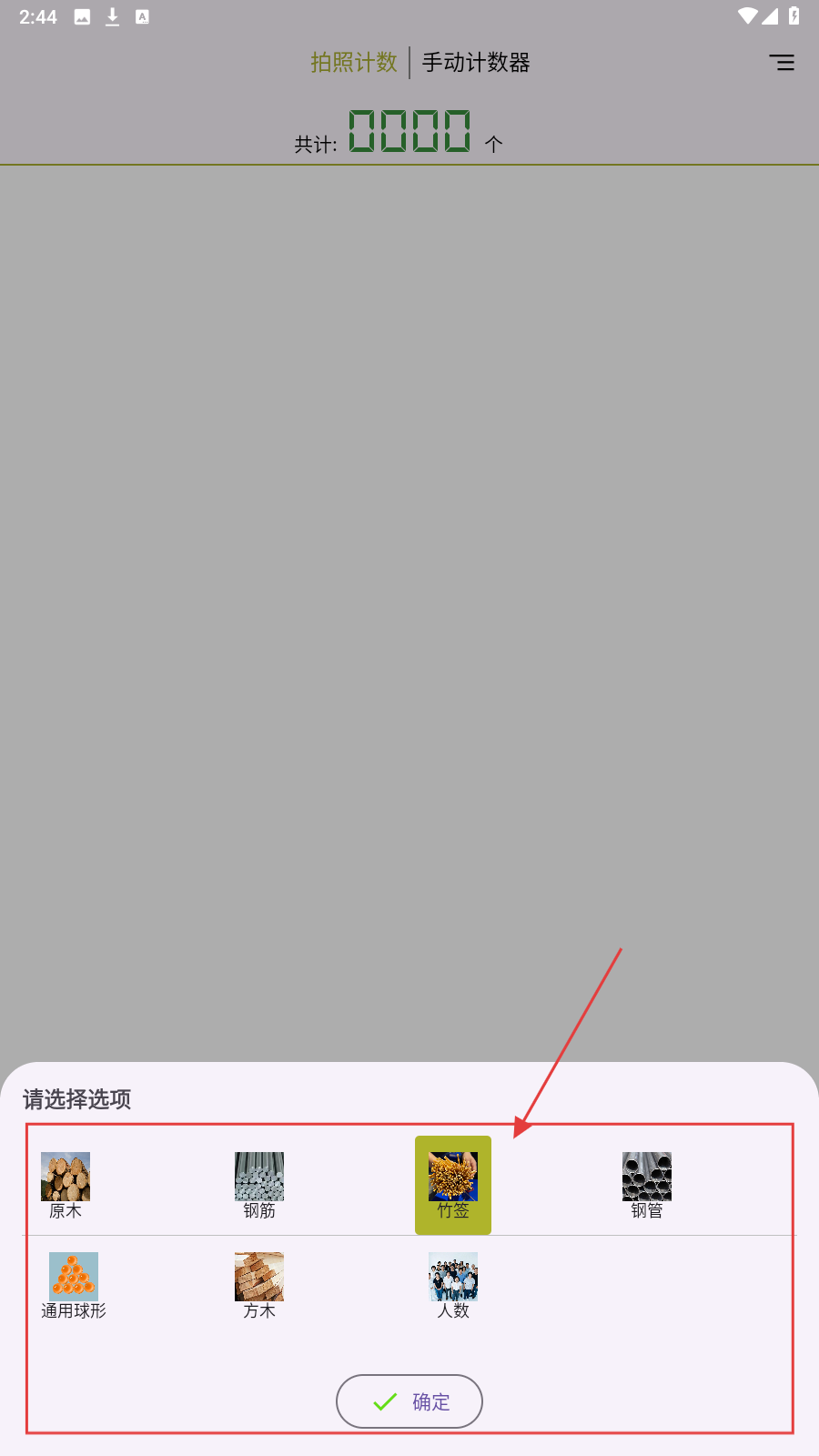2、弹出选项栏,选择如【竹签】等计数对象,点【确定】。