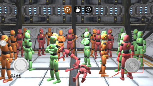 2、如何射击机器人?在教程中,使用屏幕上的虚拟摇杆和射击按钮,瞄准并射击前方的机器人。