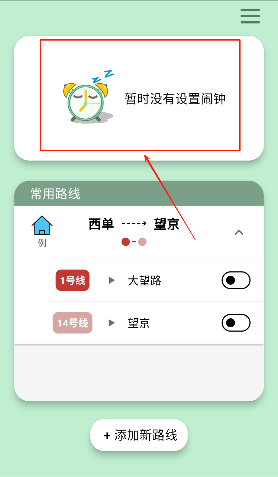 1、首页添加"10号线→国贸站"常用路线,拖拽滑块设定提前3站提醒,震动模式开启防漏听,个性化铃声选古钟报站音效哦。