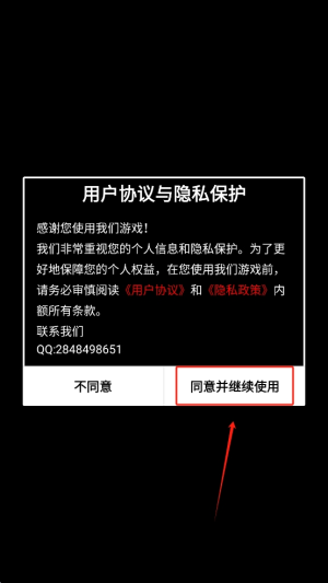 1、同意条款:点击“同意并继续使用”按钮,同意用户协议与隐私保护条款,以便继续游戏。
