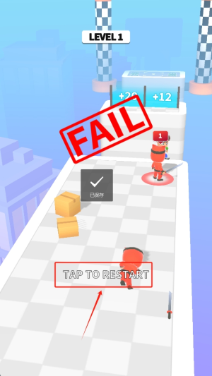 3、重新开始:如果游戏失败,点击“点击重新开始”按钮,重试当前关卡。