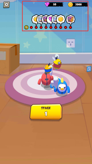 1、关注界面上方资源数值如钻石50和金币1000,合理规划资源开启关卡并了解上方功能图标作用。