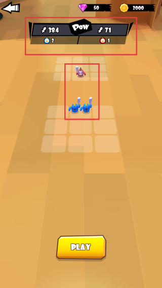 2、注意界面上方显示的攻击数值如384和防御数值71,了解自身与敌人属性差异,选择合适时机点击“PLAY”进入战斗。