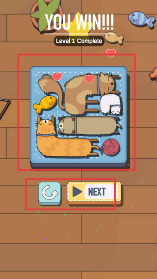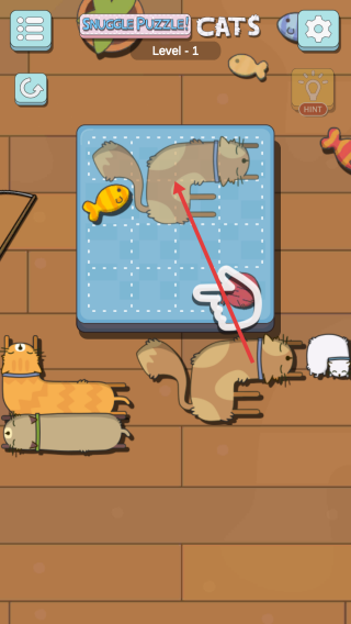 2、游戏过程中,在【Level-1】关卡,按照提示通过拖拽的方式将猫咪等元素放置到对应网格中,合理规划布局,注意元素之间的位置关系。