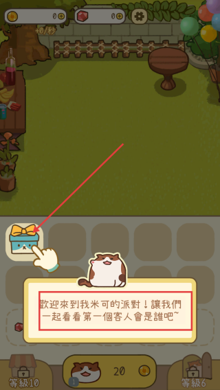 1、进入游戏,在米可的派对场景中,点击带有蝴蝶结的礼盒图标,开启派对流程,等待并观察首位客人出现。