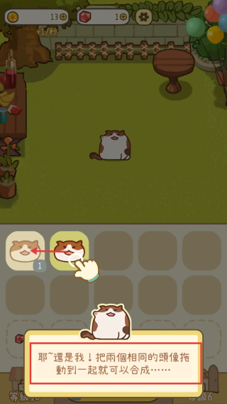 3、游戏内有合成玩法,将两个相同的头像拖动到一起即可合成,按提示操作逐步熟悉合成机制,推动游戏进程,解锁更多内容。