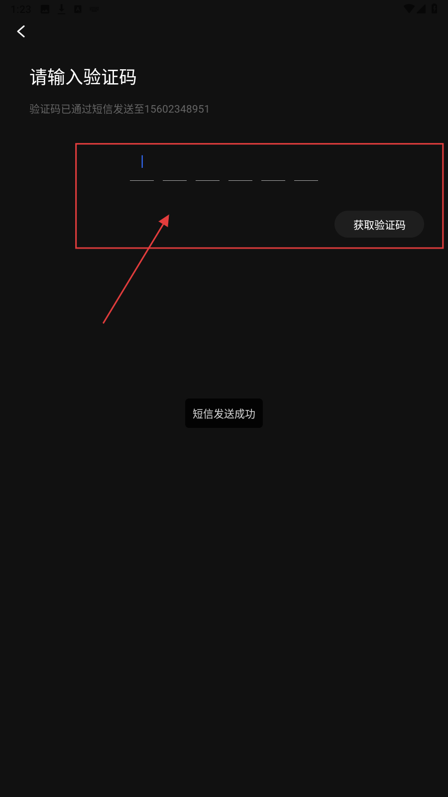 3、在验证码页,填入收到的6位验证码,完成注册登录流程。