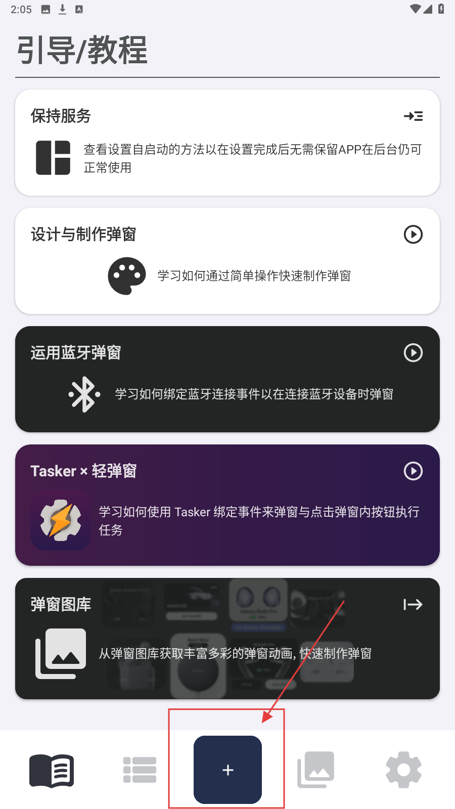 1、进入引导/教程页,点击底部【+】,进入弹窗管理页。