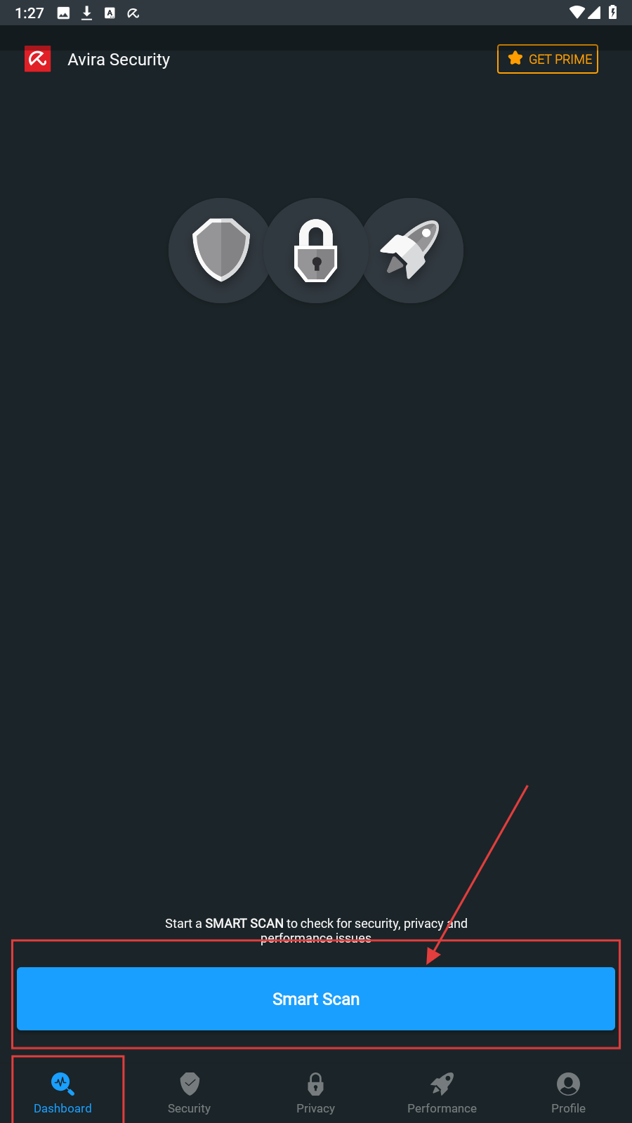 2、切换【Dashboard】页,点【SmartScan】可进行智能扫描,检测安全、隐私、性能问题。