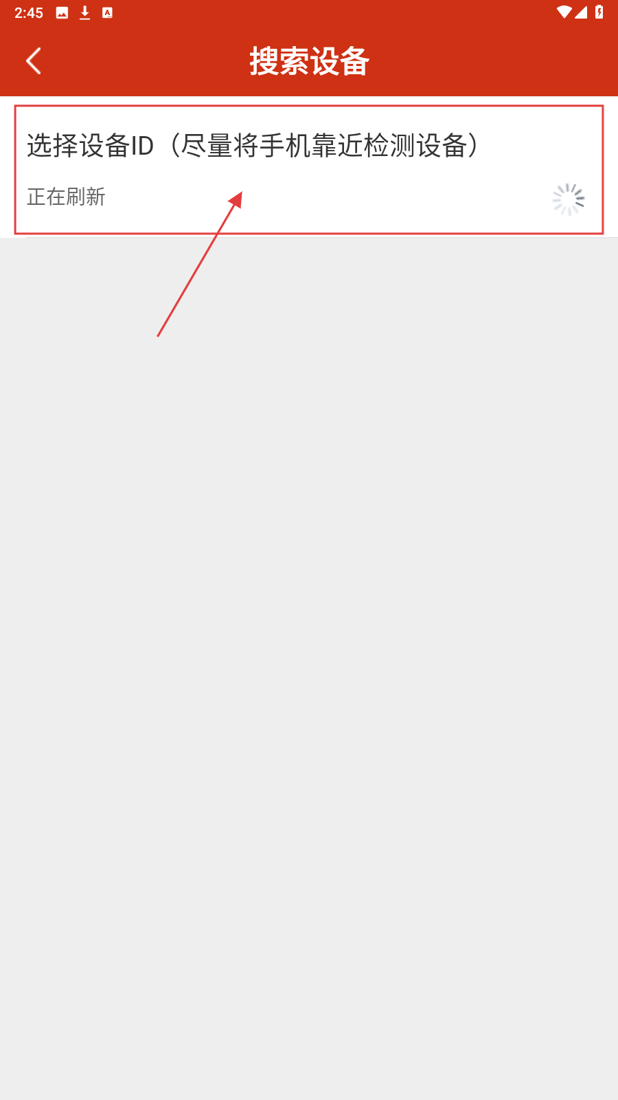 3、切换到【搜索设备】页,按提示选设备ID(手机靠近检测设备),完成设备连接流程。