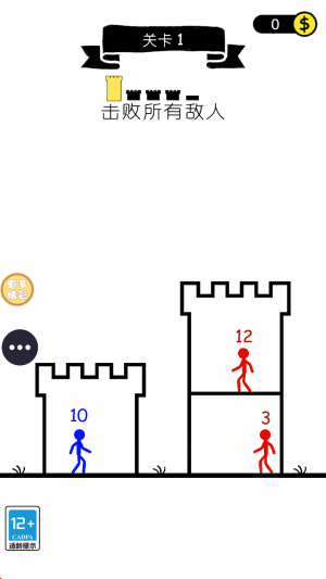 1、经典火柴人形象:我是推塔王以标志性的火柴人为主角,线条勾勒出角色与场景,唤起玩家童年回忆,带来熟悉亲切感。