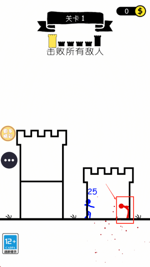 2、刺激推塔闯关:融合动作与策略元素,玩家需操控火柴人击败敌人,突破重重关卡,最终推倒敌方防御塔,体验爽快战斗乐趣。