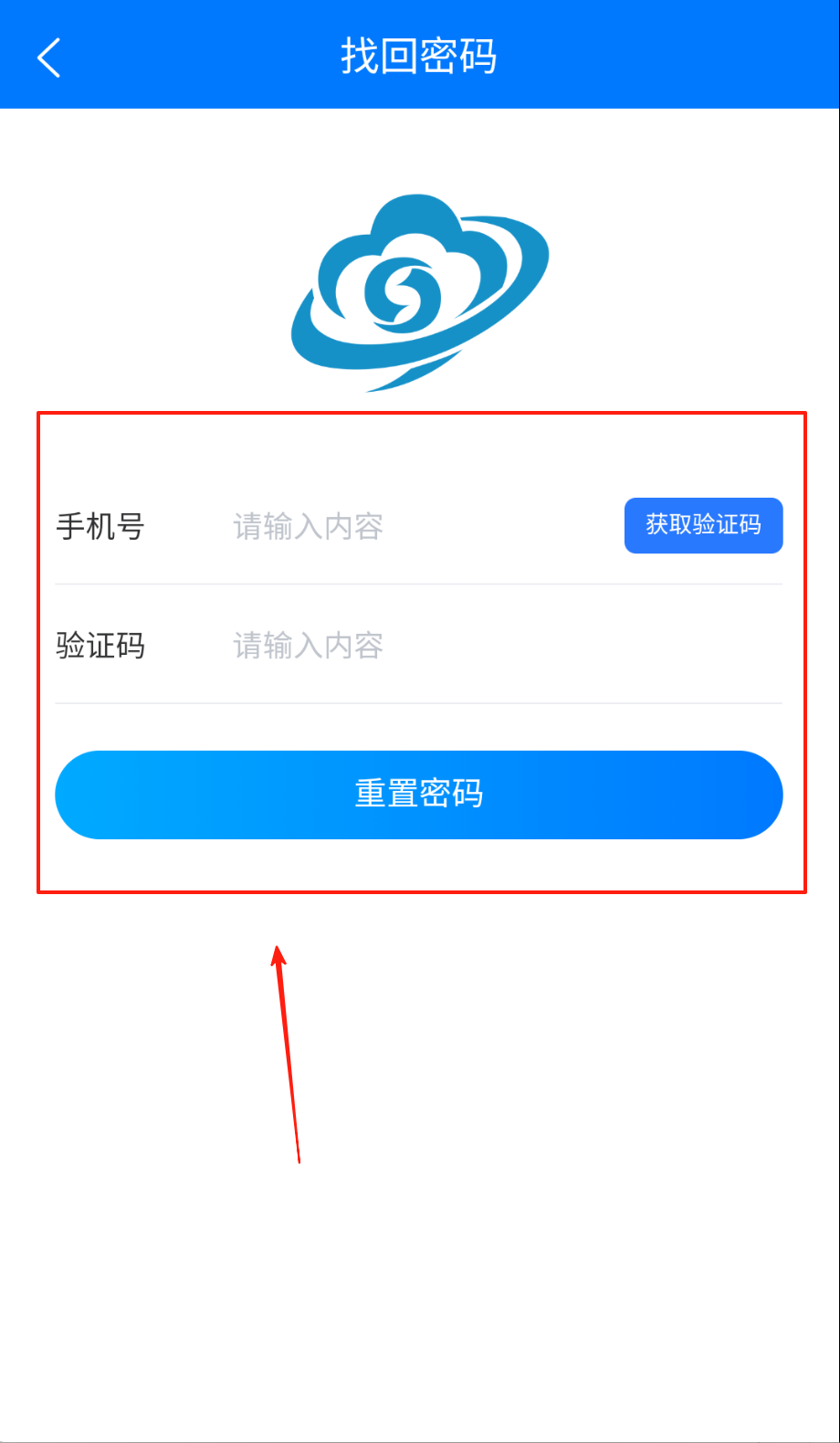 2、找回密码页先在白色框填手机号码别输错号段,点蓝色获取验证码收短信再填验证码,最后按重置密码按钮等生效啦。