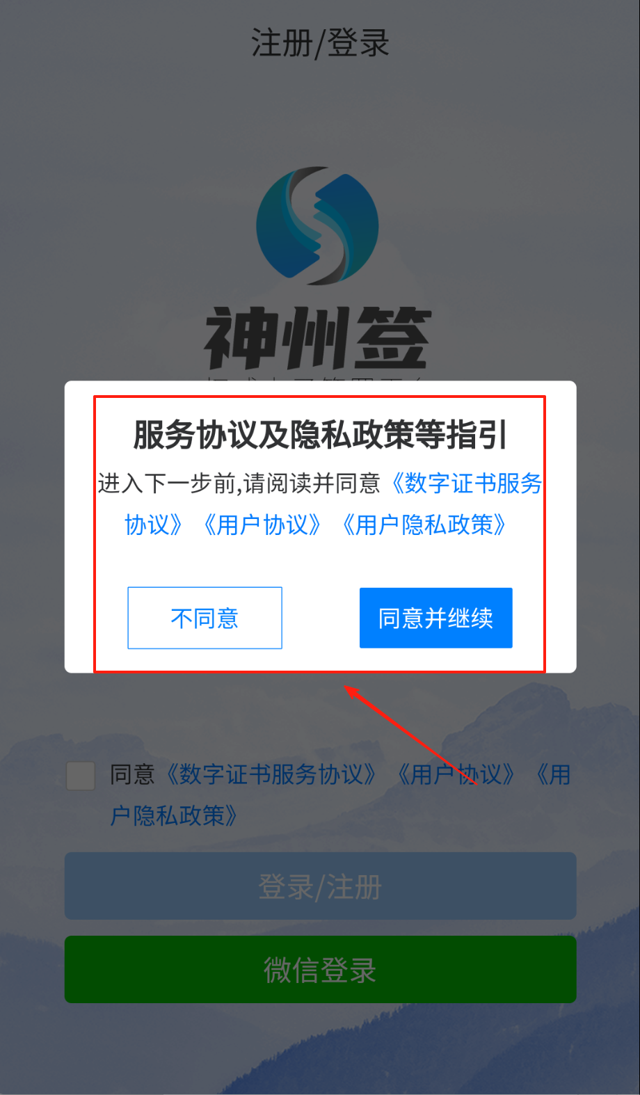 1、启动软件弹出蓝色协议弹窗必须处理呀,选中间同意并继续按钮才能进下一步操作,拒绝就停在这儿了哦。