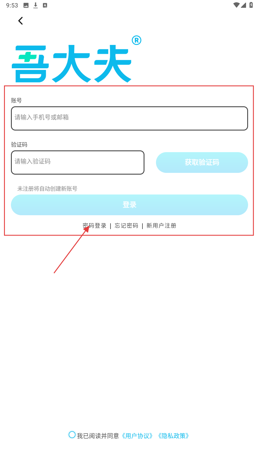 1、打开登录页,可填账号(手机号/邮箱)、验证码登录,也可点【密码登录】【忘记密码】【新用户注册】,勾选同意协议完成登录。