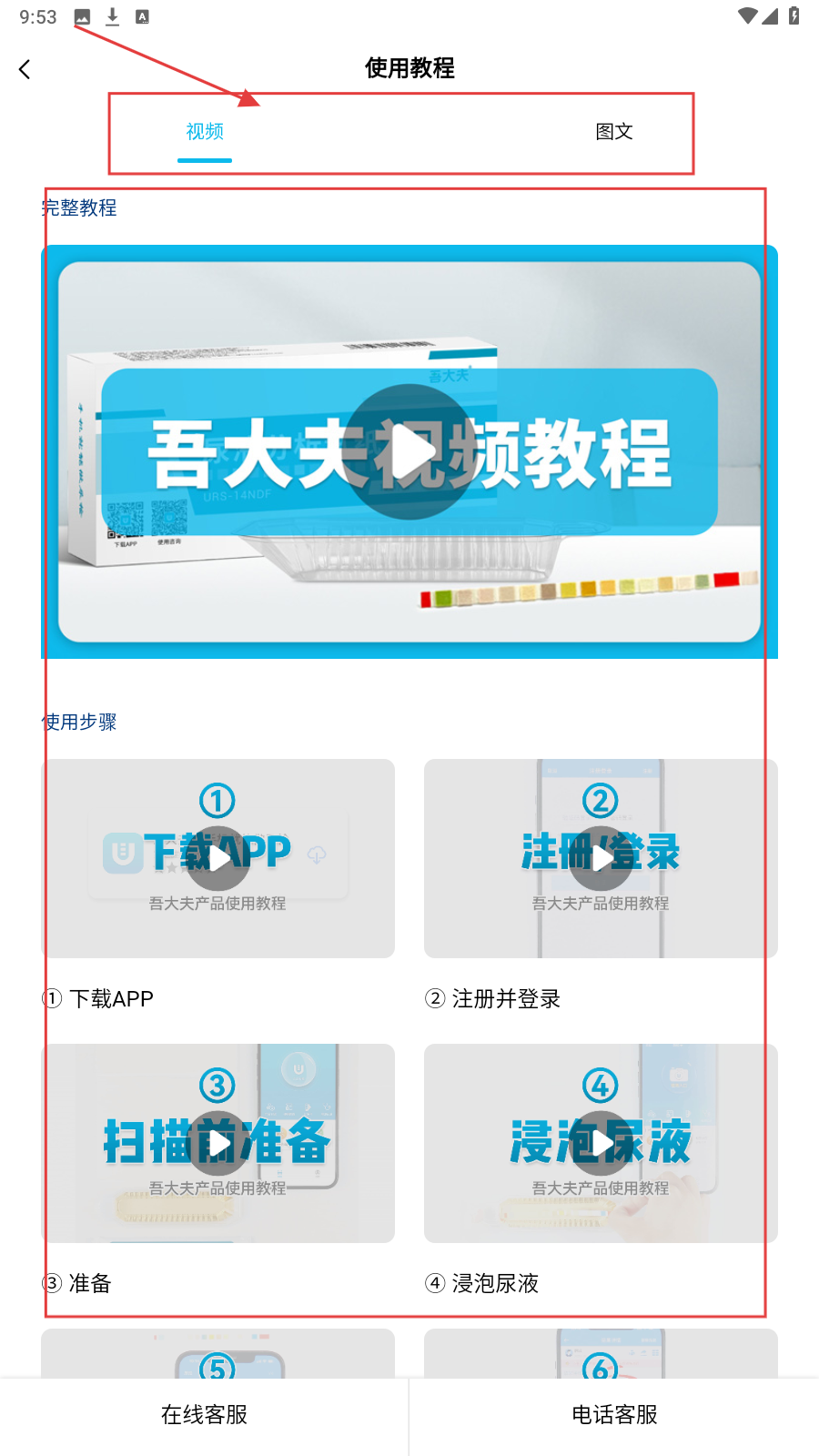 3、在【使用教程】页,可切换视频/图文教程,查看完整教程视频、分步骤(下载APP等)教学,点击对应内容学习使用流程。