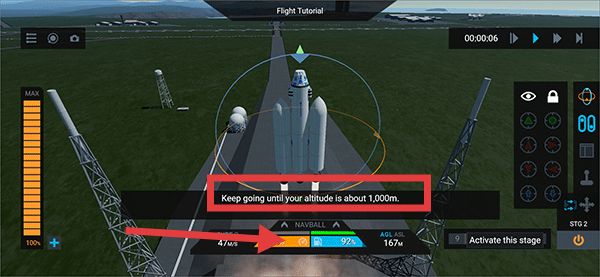 3、进入【FlightTutorial】后,操控航天器持续上升,直至高度达到约【1,000m】。