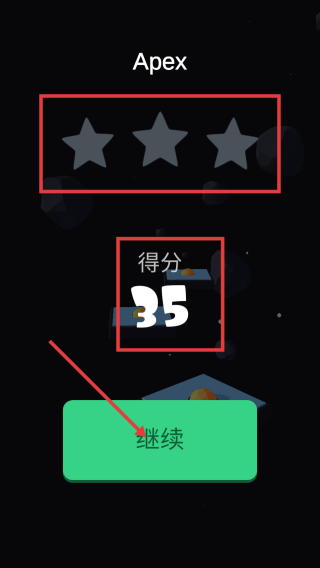 3、游戏结束后,查看【得分】情况和星级评价,若想继续挑战,点击【继续】按钮,可重新开始或选择其他歌曲。