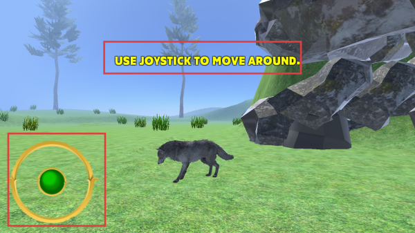 3、进入游戏场景后,依据提示【USEJOYSTICKTOMOVEAROUND】,通过左下角的虚拟摇杆控制狼在场景中移动,开启游戏探索。