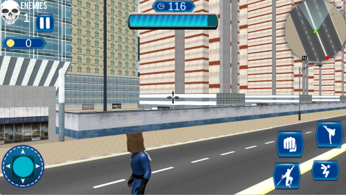 1、操控超人出动:进入游戏,滑动屏幕控制机甲超人移动,利用绳索在城市建筑间穿梭,寻找需要帮助的市民。