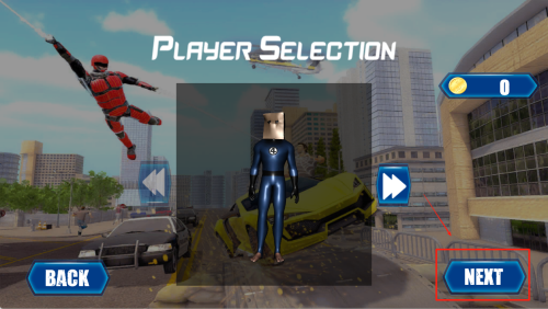 2、选择角色:在“PLAYER SELECTION”界面,点击“NEXT”按钮选择你的角色。