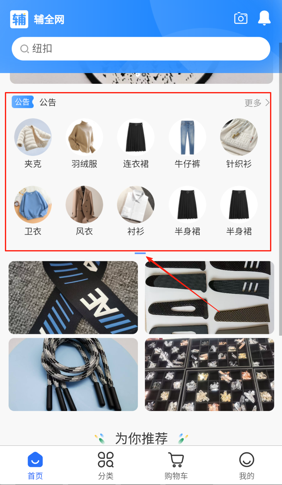 1、首页筛选"纽扣拉链"分类查看3D辅料库,智能推荐标注历史采购价差,收藏功能标记常用供应商,定制需求框输入颜色规格参数哦。