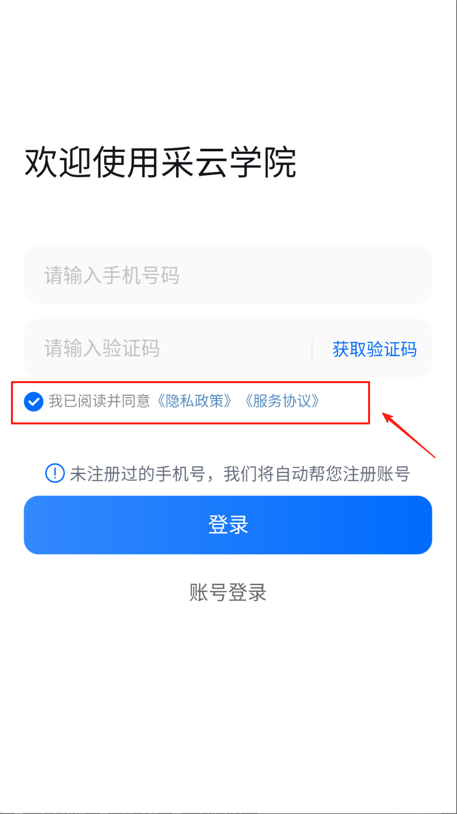 3、新用户直接输手机号收验证码,系统自动注册不用额外操作,协议框千万别漏勾就行咯。