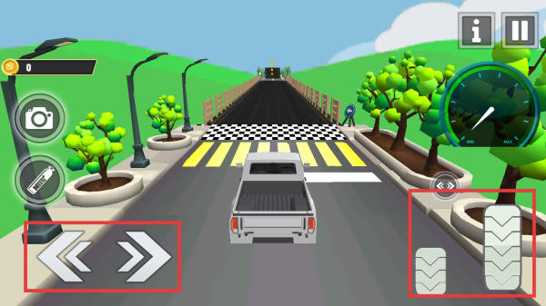 2、进入游戏后,利用左下角的左右箭头按钮控制车辆转向,右下角的踏板按钮控制加速和刹车。熟悉这些操作,在赛道上灵活驾驶。