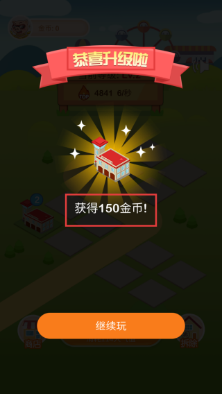 3、建筑升级后,可获得金币奖励,利用这些金币和人气值,继续购买、合成建筑,不断扩大和升级建筑规模,提升每秒收益,推进游戏进程。