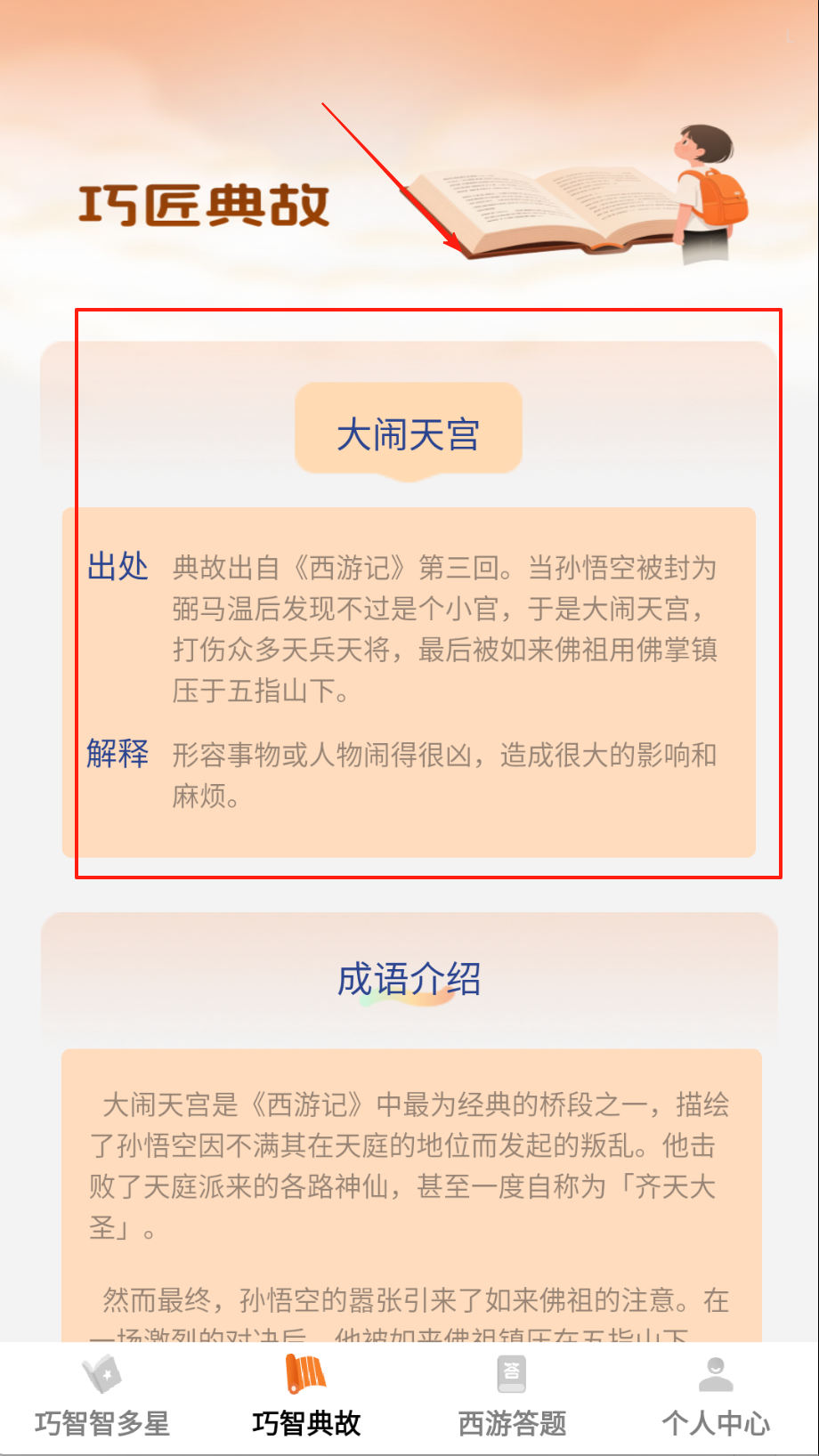 2、学习页拖动成语卡片完成典故排序,亲子模式录制方言朗诵音频,测试功能生成阶段能力图谱,错题本自动归类薄弱环节啦。