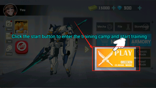 2、开始训练:点击开始按钮进入训练场,开始训练模式。