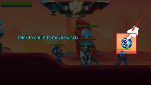 1、快速移动:点击屏幕上的冲刺按钮,使机器人快速移动。