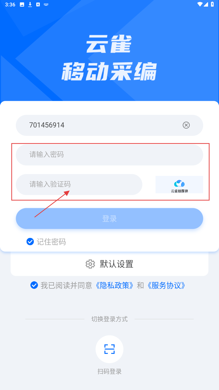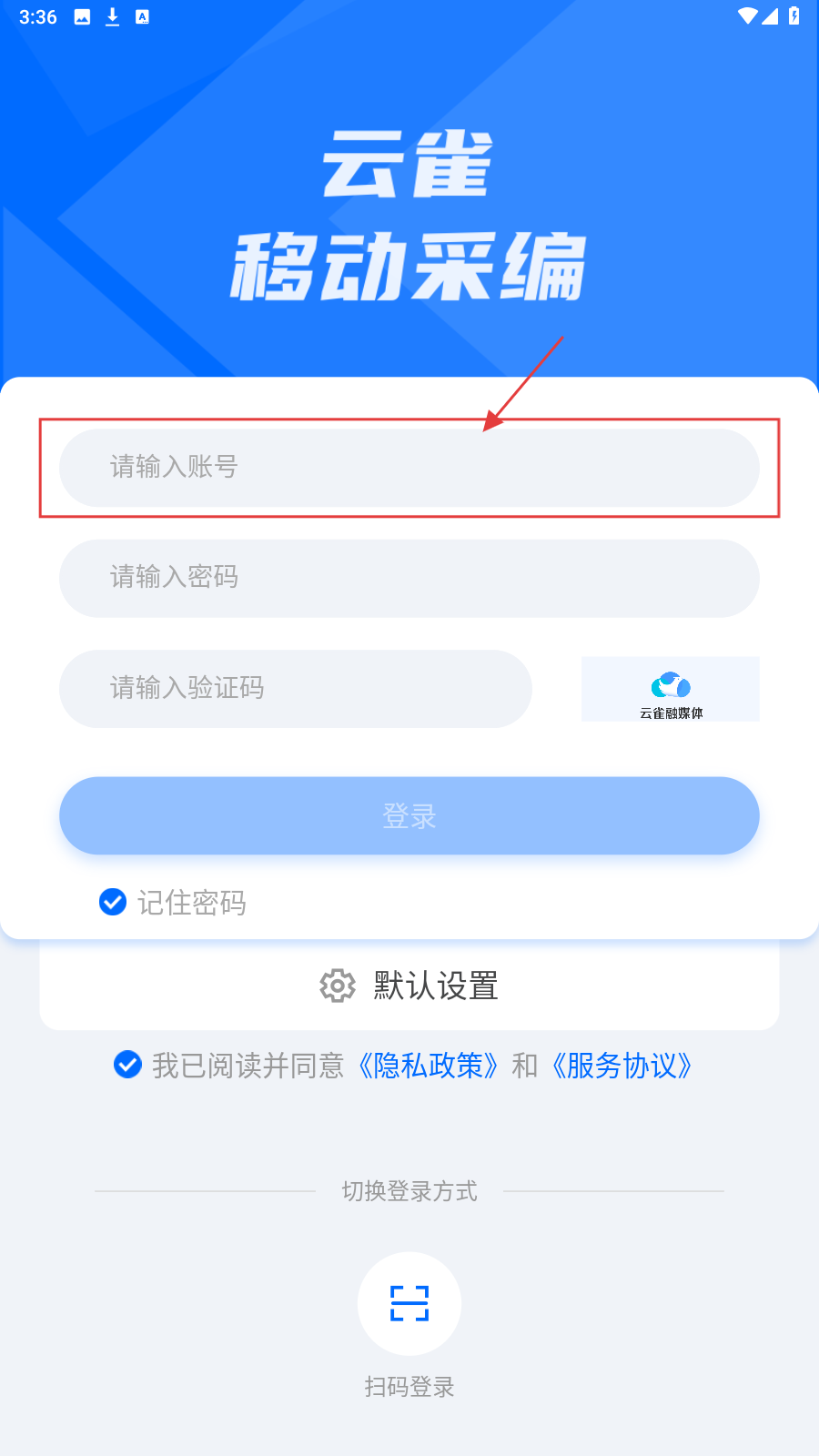 1、打开“云雀移动采编”登录页,在【请输入账号】框填入账号。