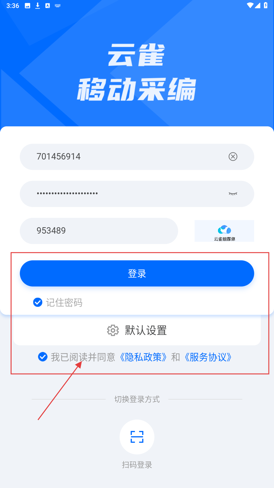3、勾选【我已阅读并同意《隐私政策》和《服务协议》】,点击蓝色【登录】按钮完成登录。