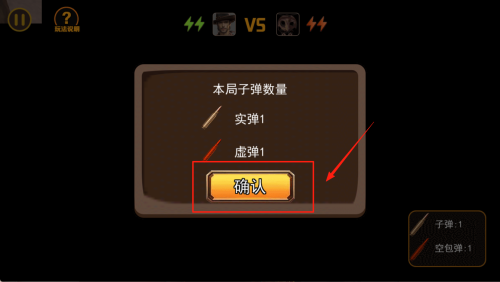 1、确认子弹数量:进入游戏前,确认本局子弹数量,包括实弹和虚弹,然后点击“确认”按钮。