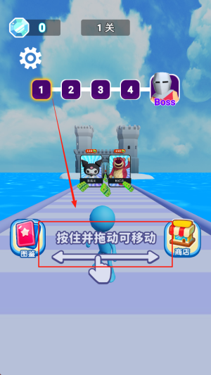 3、控制角色:进入游戏后,按住并拖动角色进行移动,躲避障碍物和敌人。