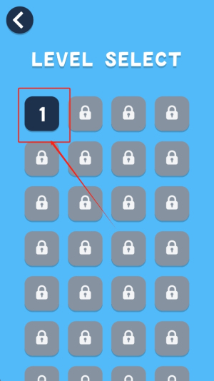 2、选择关卡:在“LEVEL SELECT”界面,点击第一个关卡(标有“1”的按钮)以选择并进入游戏。