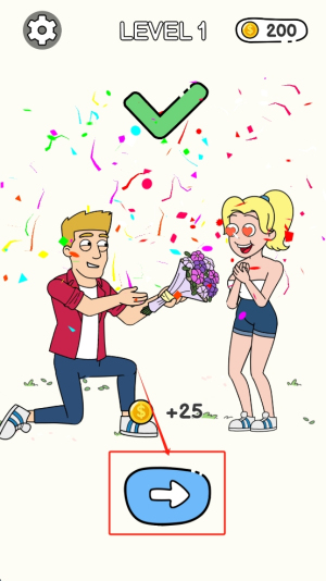 3、赢得芳心:当女孩接受礼物后,点击“→”按钮以确认成功并进入下一关。