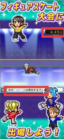 2、在(花样滑冰比赛)界面,留意选手得分和提示(如下次跳跃100%成功),合理安排选手参赛,争取高分,提升店铺知名度。